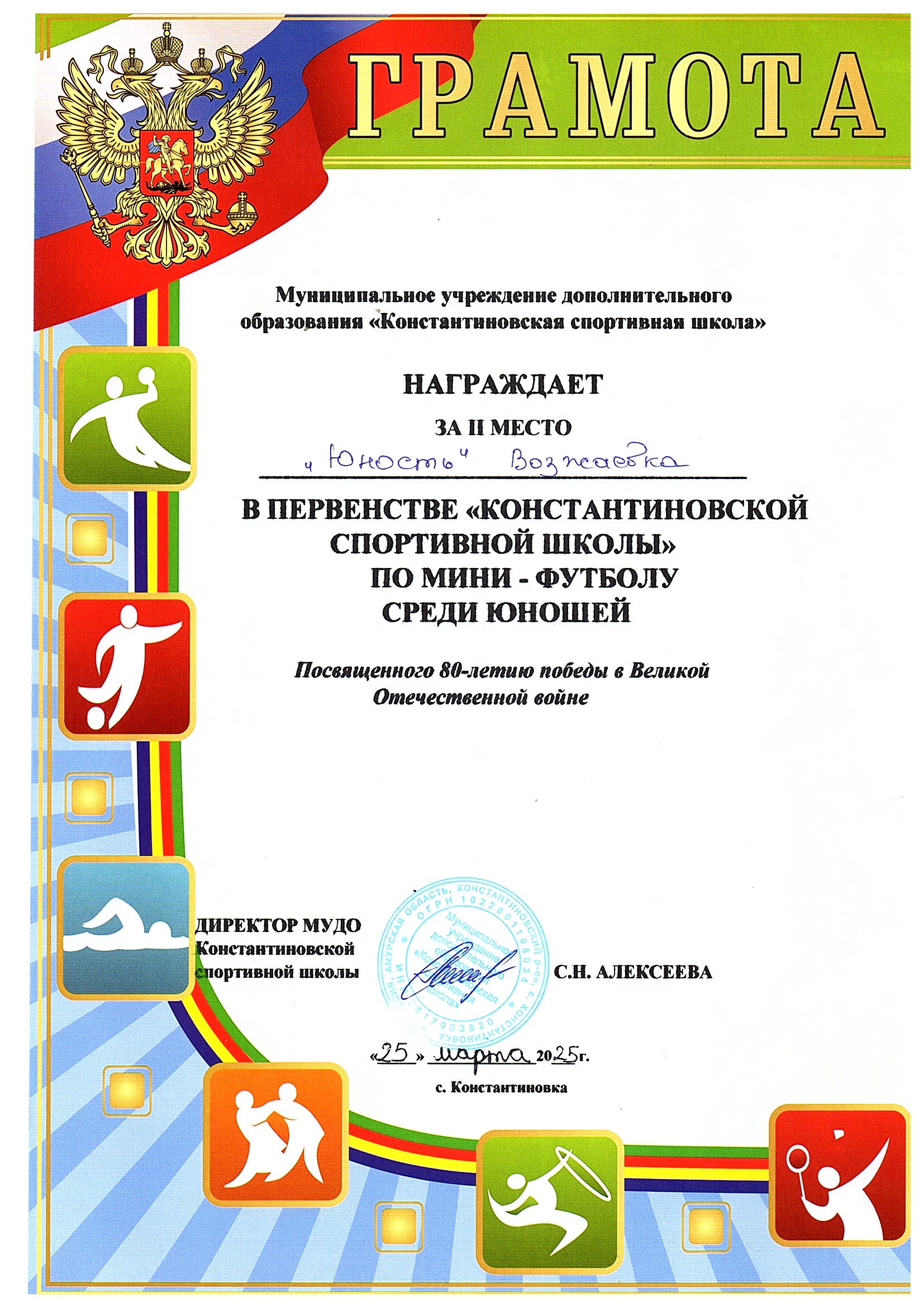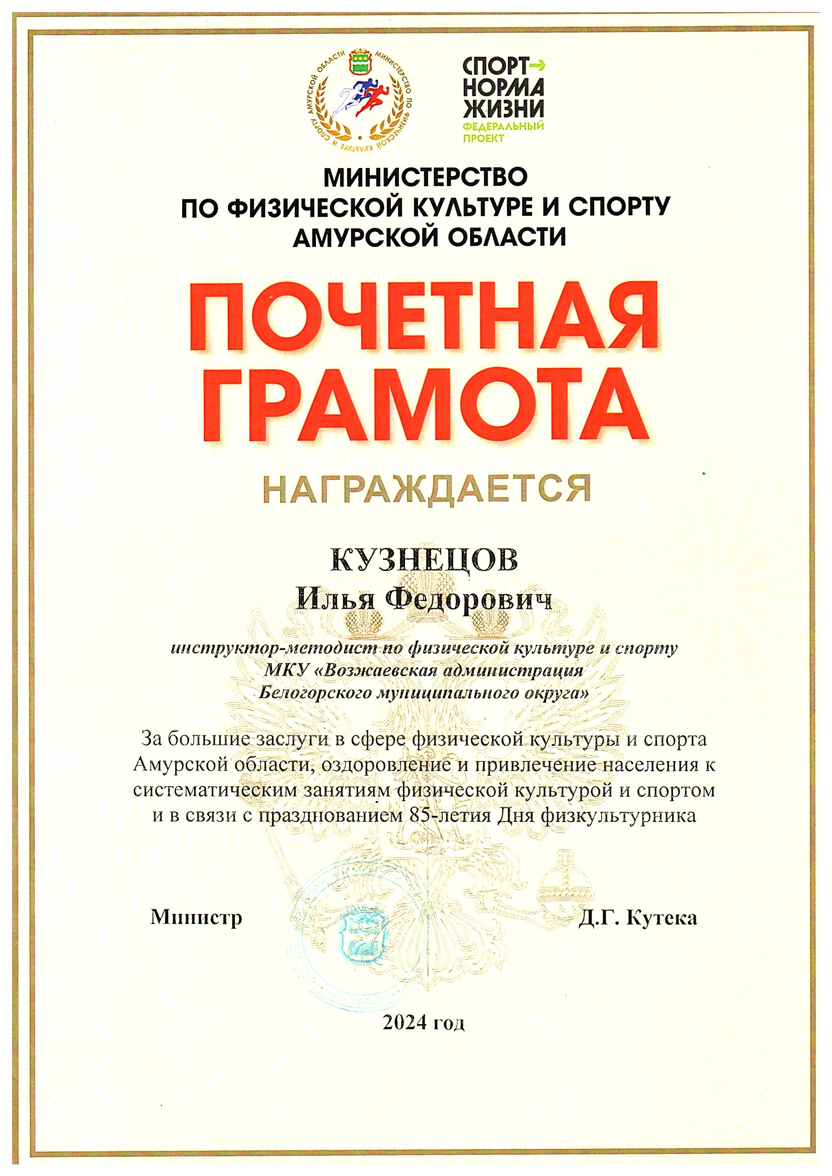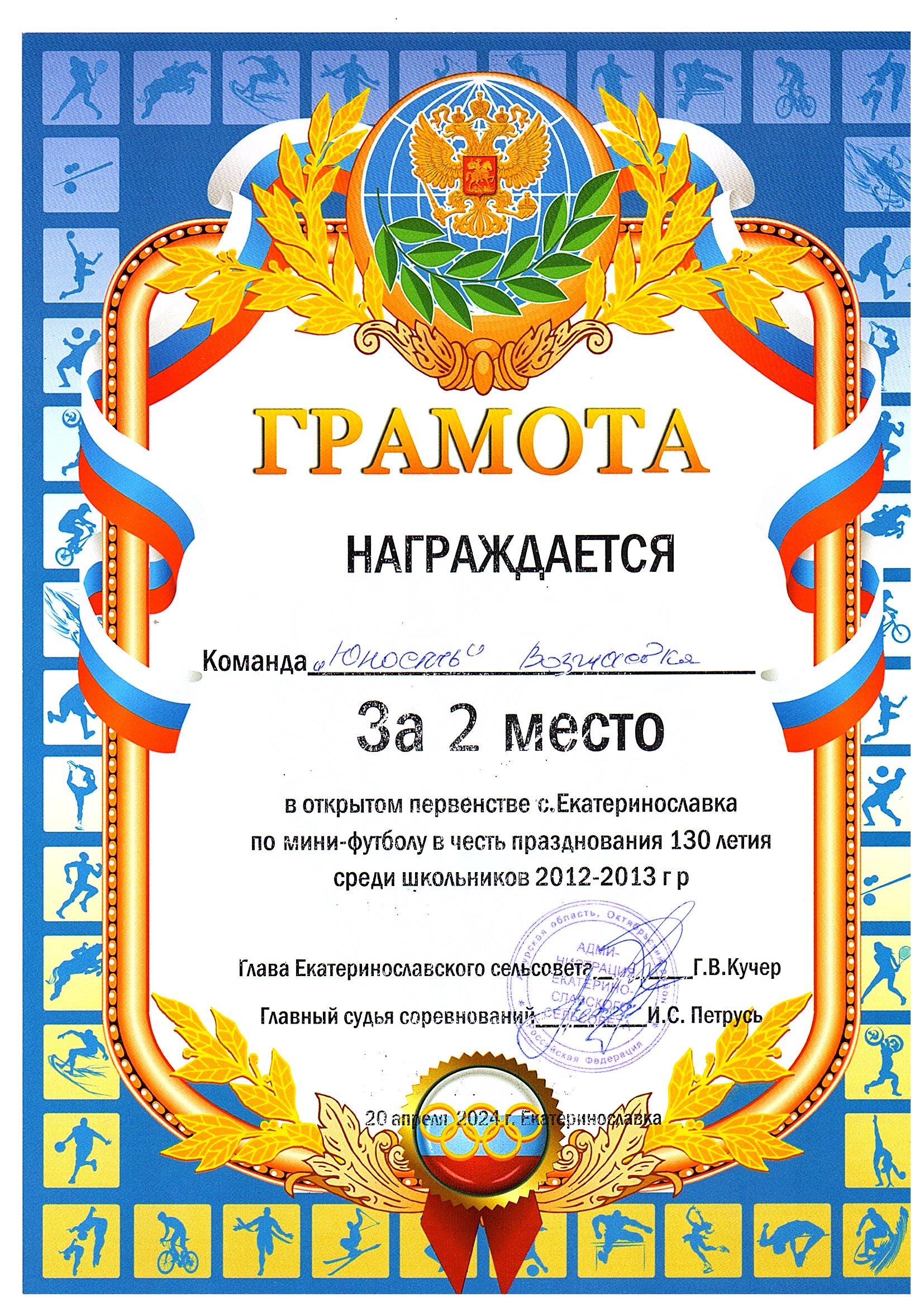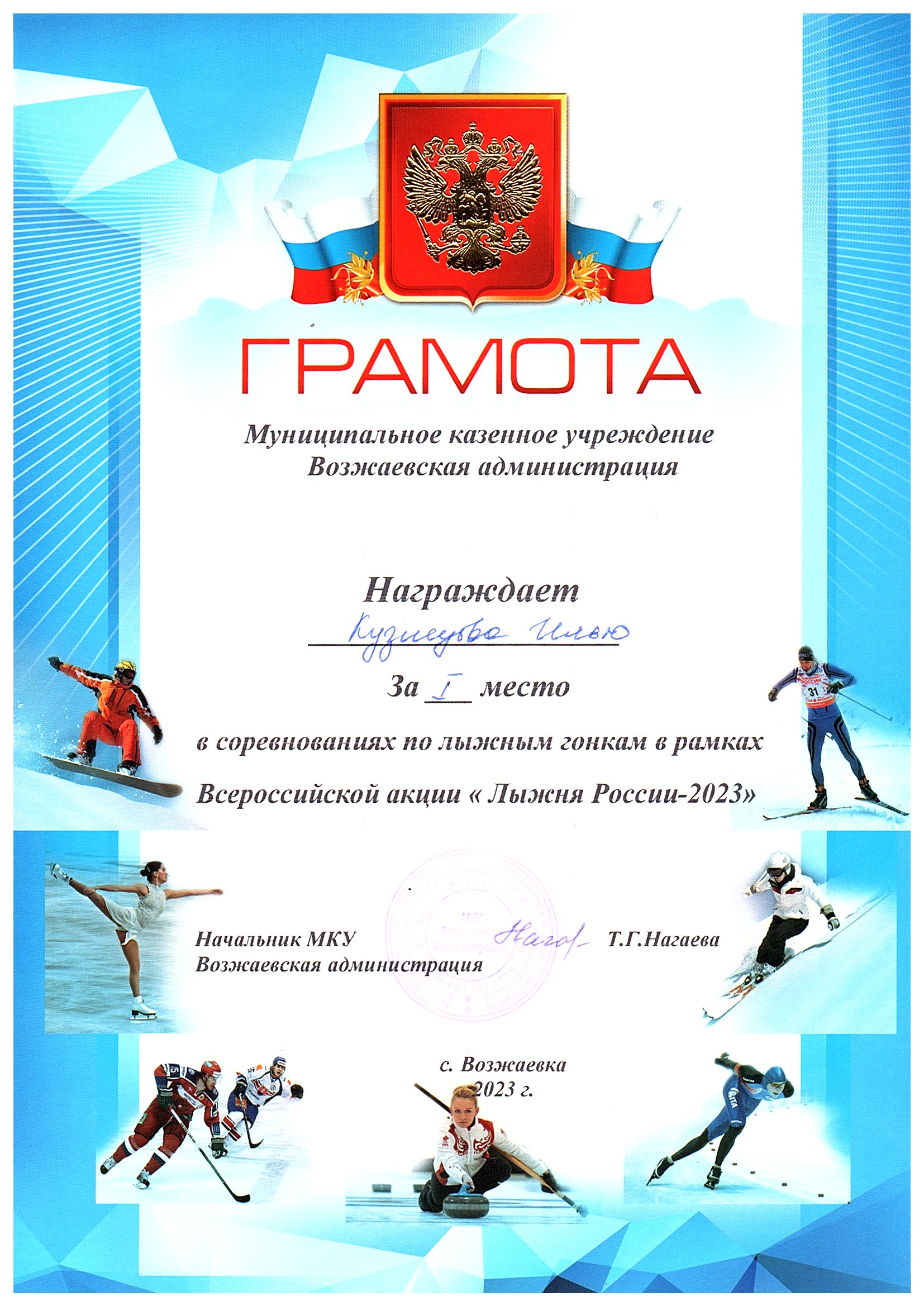 Номинация: «Лучший организатор физкультурно-спортивной (физкультурно-оздоровительной) работы в сельской местности»