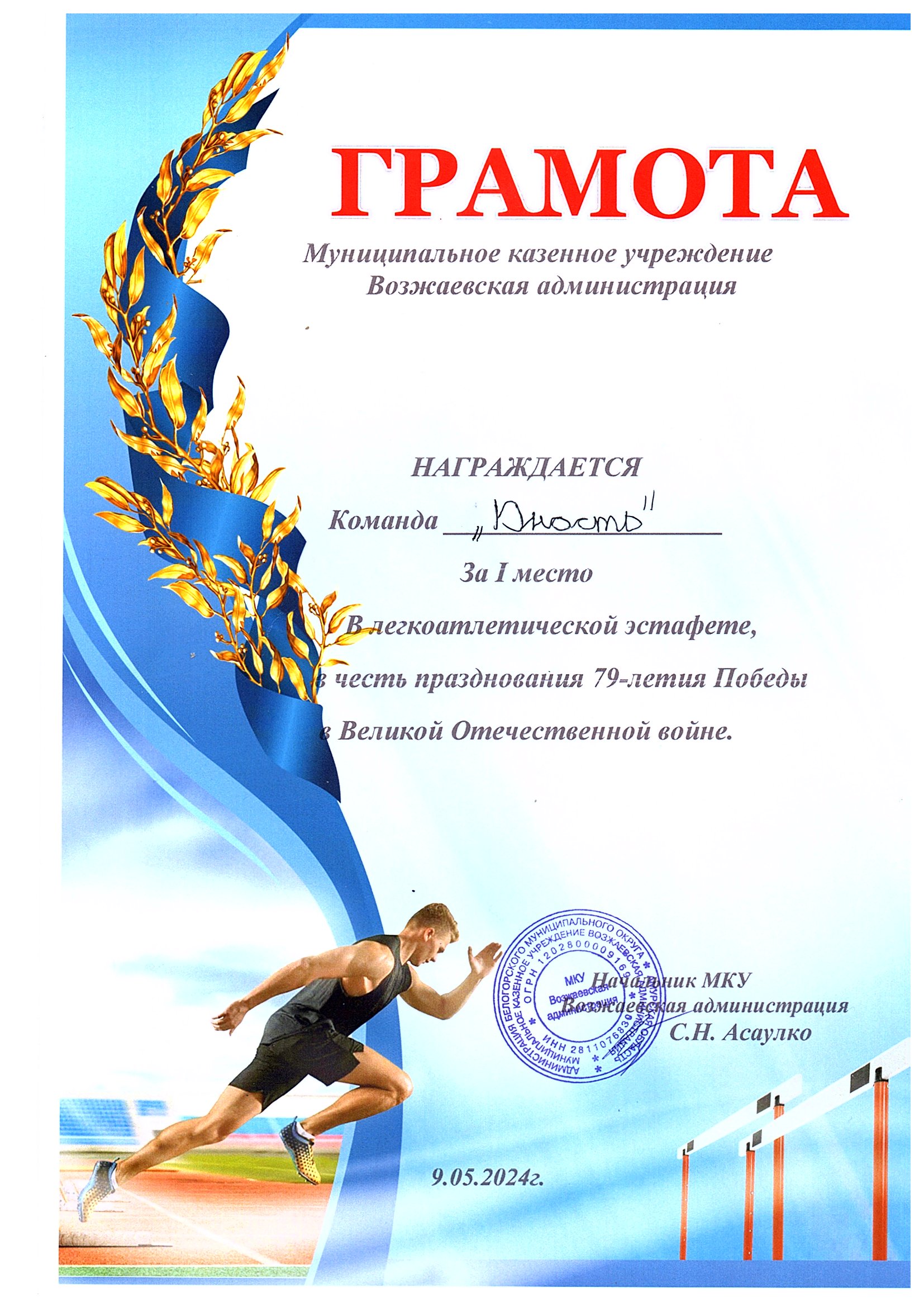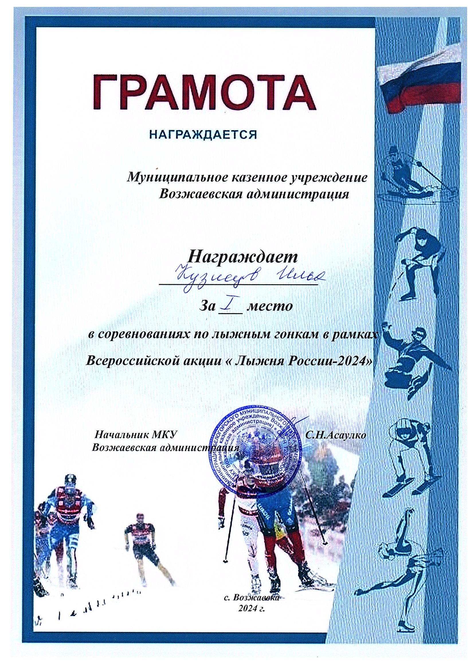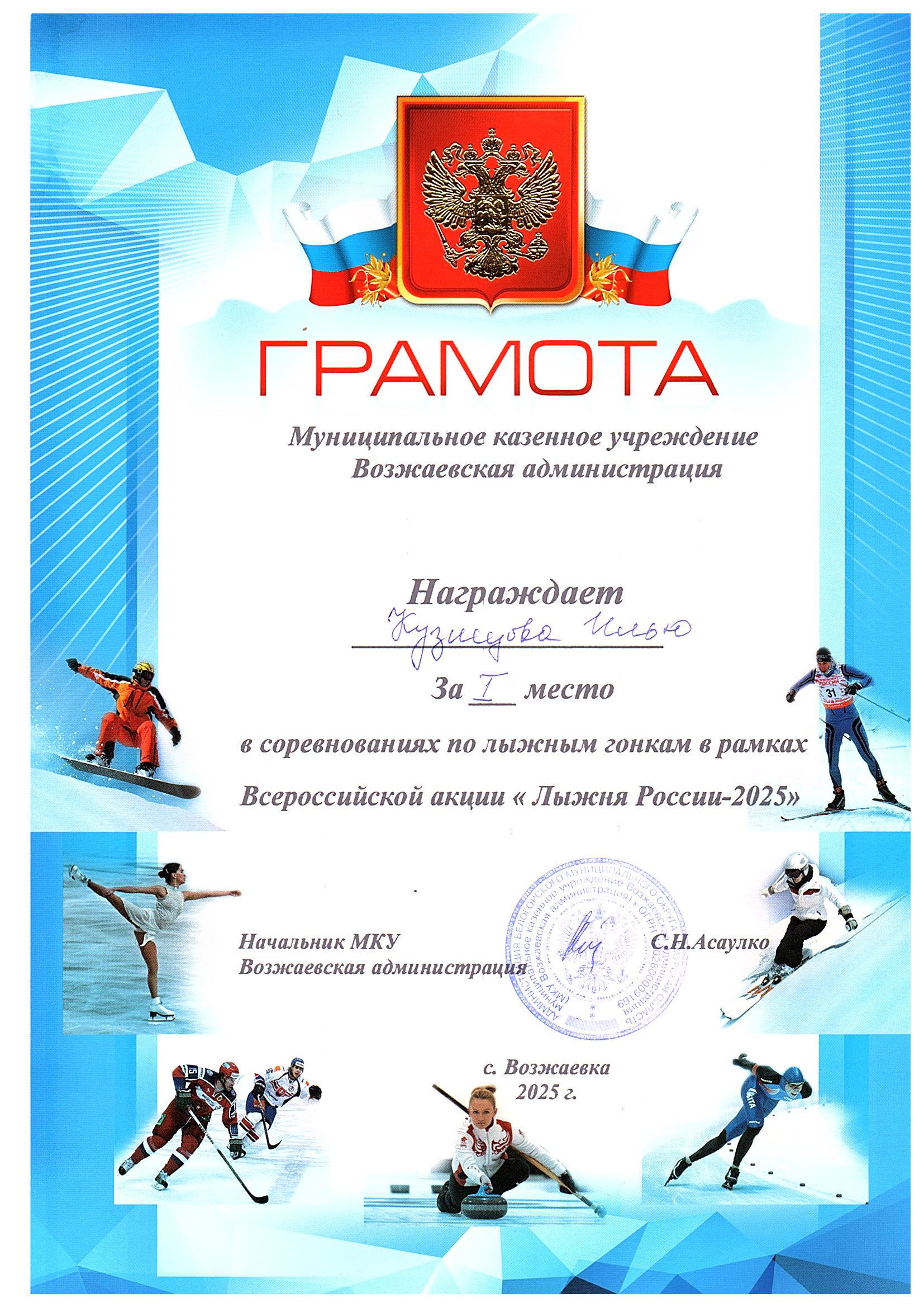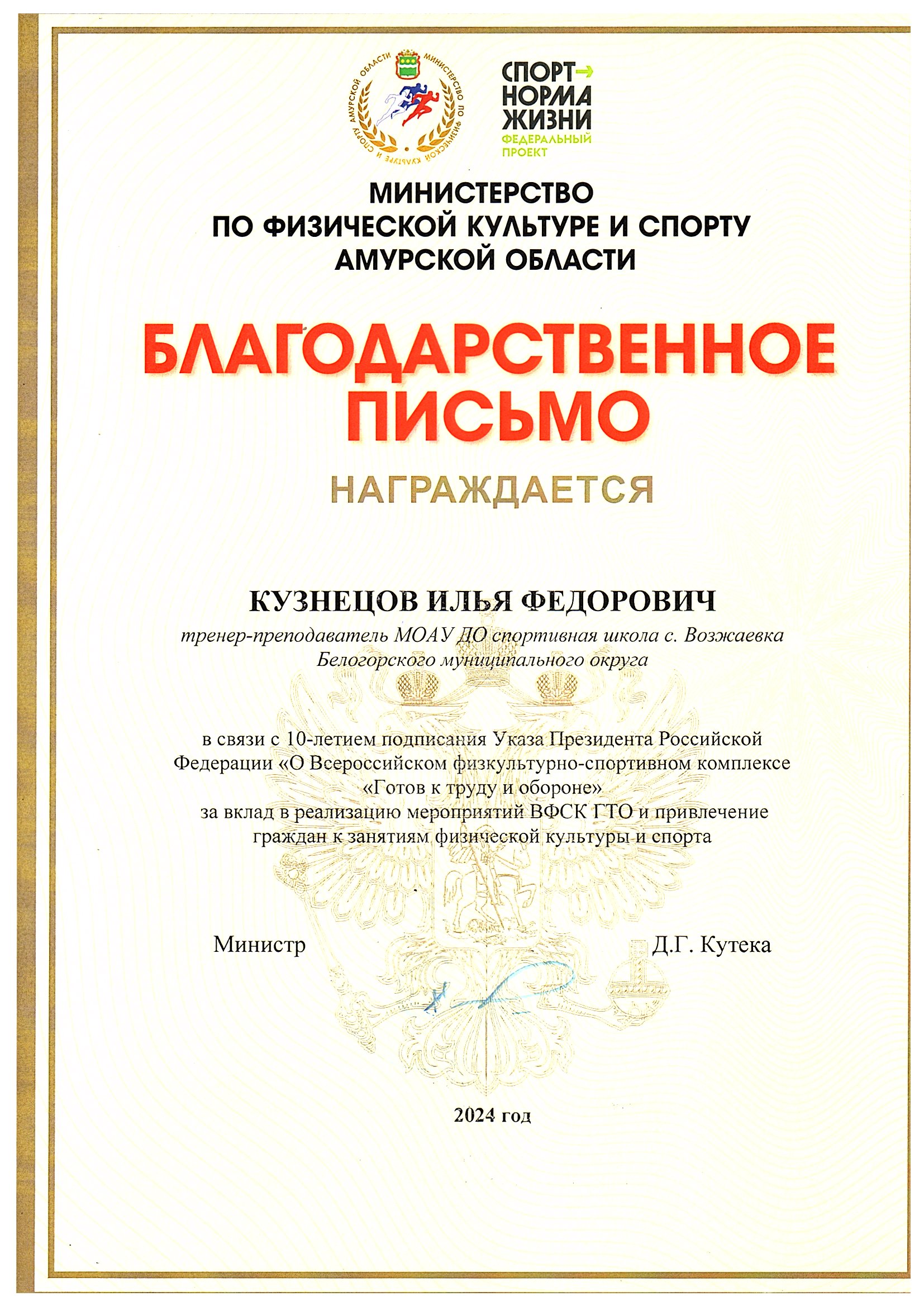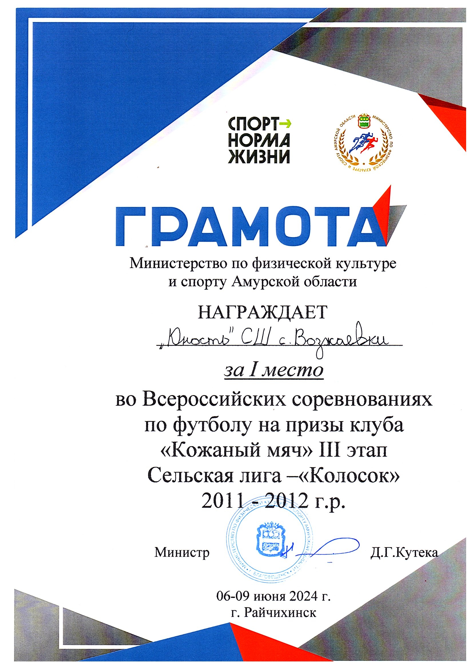 Номинация: «Лучший организатор физкультурно-спортивной (физкультурно-оздоровительной) работы в сельской местности»