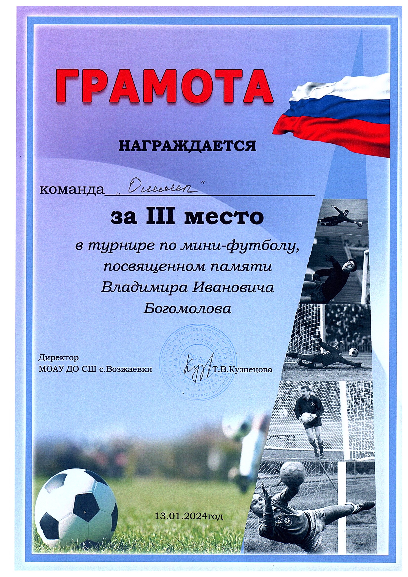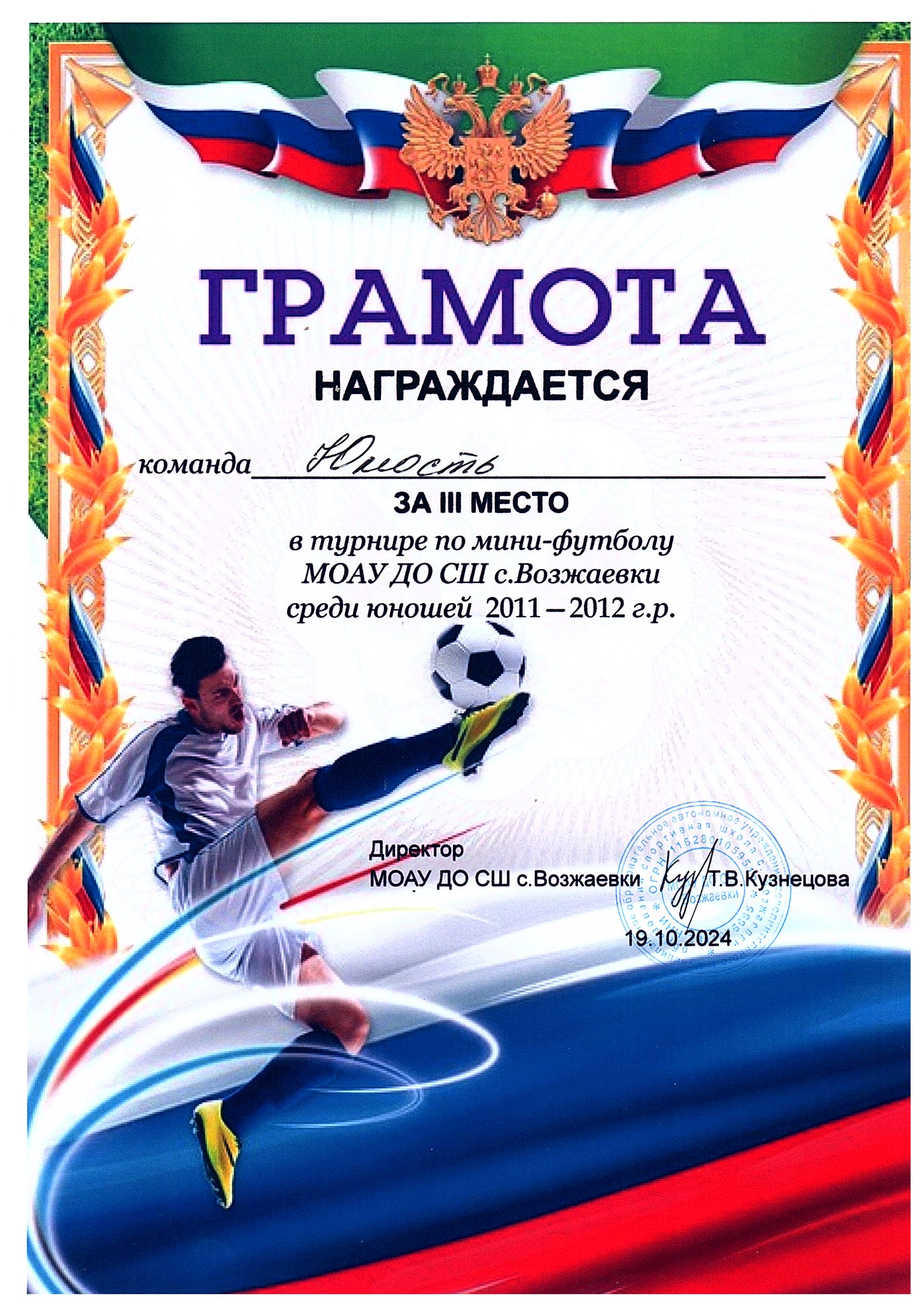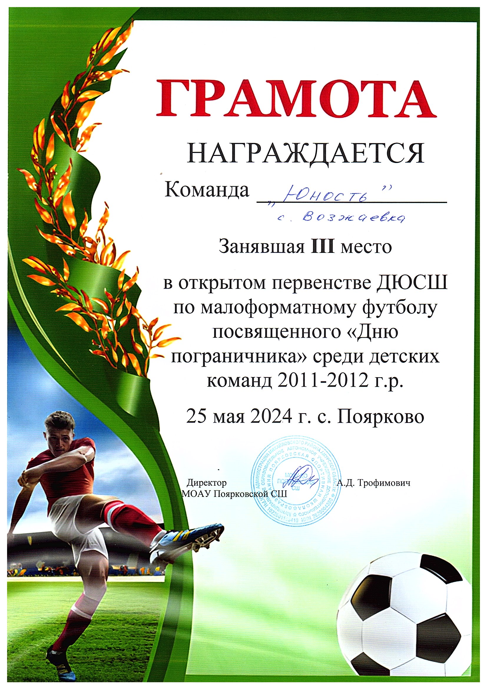 Занимаемая должность - Тренер-преподаватель Преподаваемые предметы – Футбол Общий трудовой стаж - 8 лет