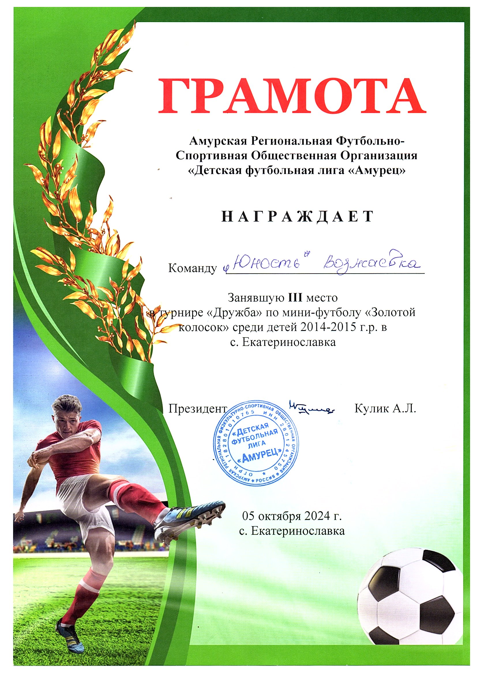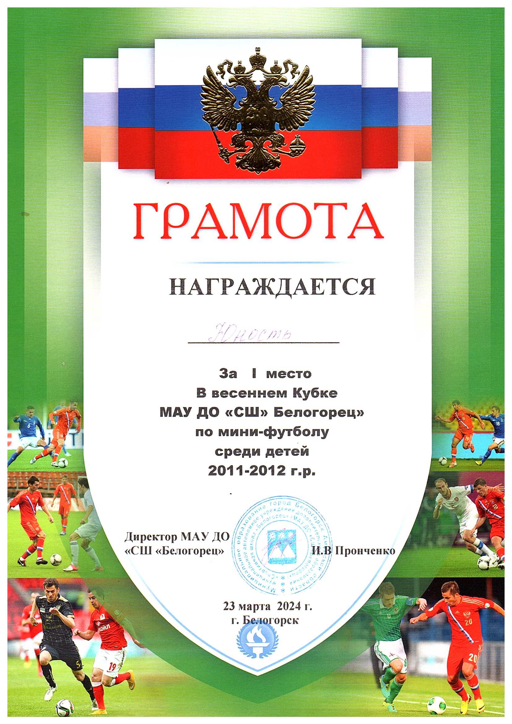 Моя главная задача — создать на тренировках атмосферу, которая вдохновит детей на занятия футболом и пробудит в них любовь к этому виду спорта. Я стремлюсь передать им все свои знания и навыки. Я стараюсь быть в курсе последних тенденций и постоянно развиваться, чтобы стать настоящим профессионалом в своей области. И я вижу результаты своего труда в горящих глазах детей, в медалях и кубках, которые они получают на соревнованиях.